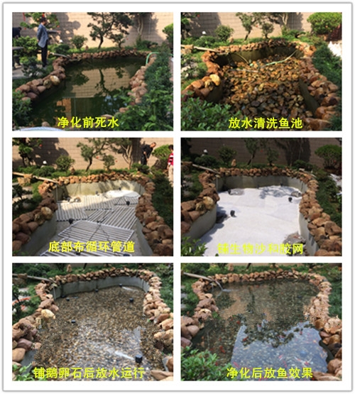 7 、在水体表面铺上鹅卵石(主要是生物菌种生长的温床,并且优雅美观)