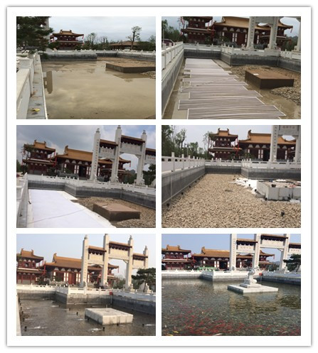 2. 先将要施工的鱼池中的锦鲤捉到鱼袋中或者鱼缸中暂养(无鱼则不用),待我公司工作人员完工放水稳定后,再将鱼捉回到原来的鱼池中。