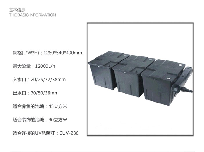 由于鱼类的排泄物与残饵超过微生物滤床所能分解硝化的能力,从而使腐生的细菌增长,造成水质的恶化,产生碳化物,使池水污浊不清,影响观瞻、危害鱼类的健康。若大量过勤换水,引起温度、酸解度及溶解氧等经常改变,影响到有益的硝化细菌的繁殖和硝化作用;水质及水温的过大变化都会影响鱼类的生长及危害鱼类的健康。所以养鱼前一定要先了解养鱼水过滤技术,了解鱼池如何做过滤,自己的鱼池情况做什么过滤好,如何清除和防止绿藻生长,如何降低养鱼换水频率等问题。欢迎您的来电,我们将携程为您服务!!!