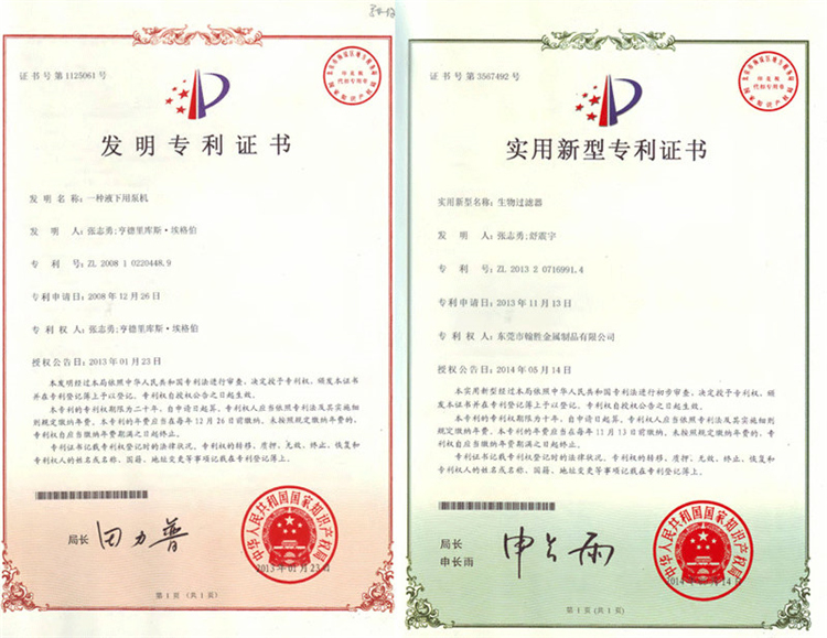 2、物理过滤、生化仓均无需电力,无任何耗材,永久性,无需更换,获得多项国家发明专利,免去后期维护成本;